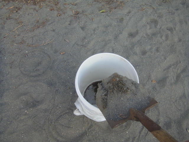 立てて砂を入れます。